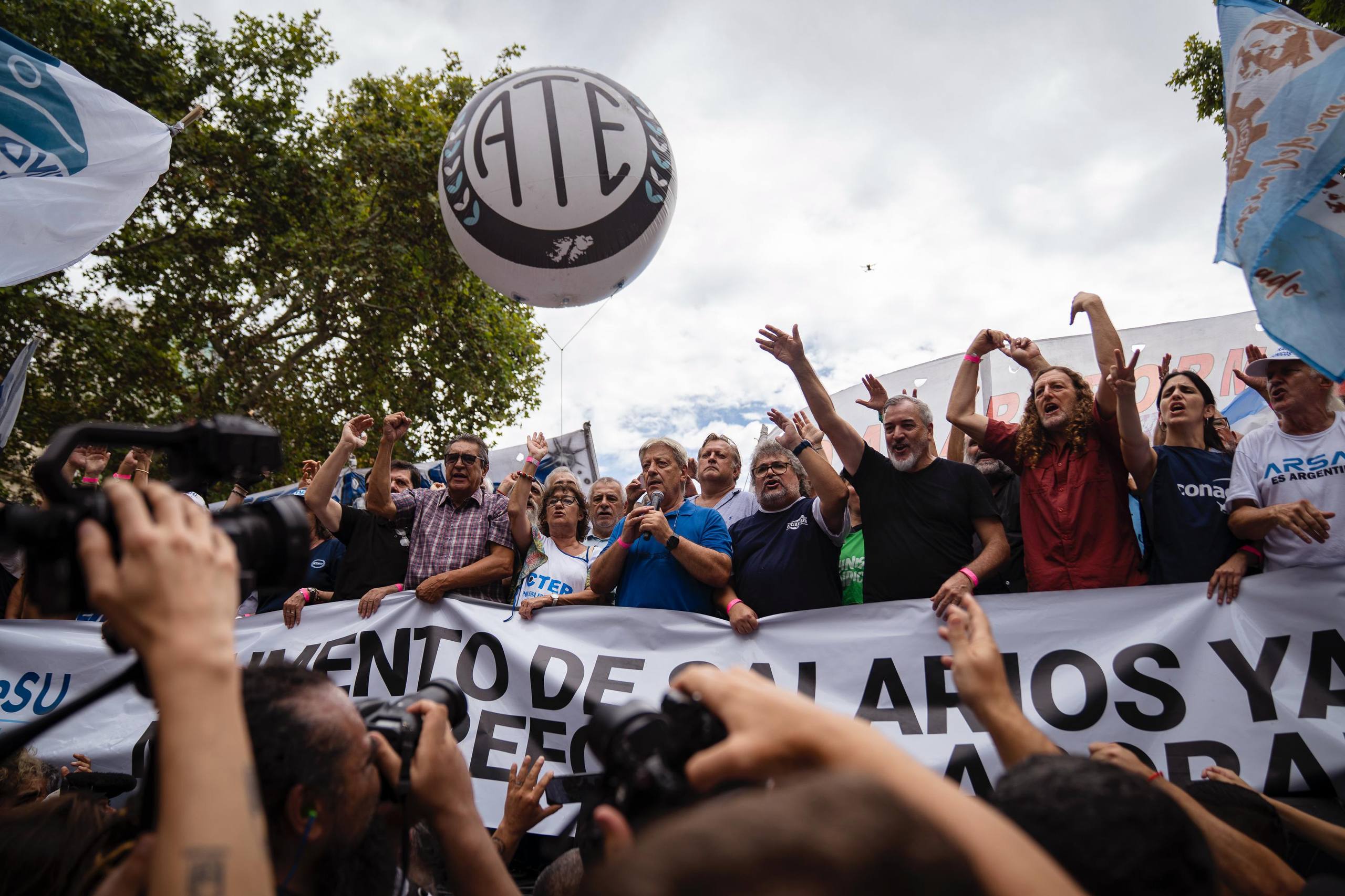 El secretario general de la Unión Obrera Metalúrgica (UOM), Abel Furlán, afirmó ante la multitud que “esto se resuelve con disputa, se resuelve con lucha, no ahí adentro traicionando lo más sensible y lo más digno que tiene cada trabajador que es su fuente de trabajo”. Advirtió que no se puede naturalizar “que cientos de miles de trabajadores todos los días pierdan su trabajo, o que tengan que tener tres trabajos para poder garantizar la canasta alimentaria”.
